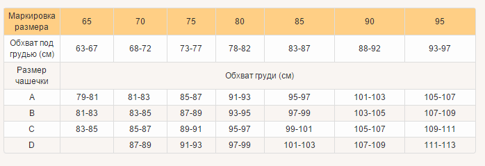 Таблица размеров: