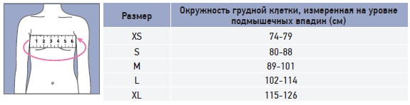 Для правильного выбора подходящего размера корректора осанки Orlett TLSO-360(A) необходимо сантиметровой лентой измерить окружность грудной клетки на уровне подмышечных впадин и воспользоваться таблицей: