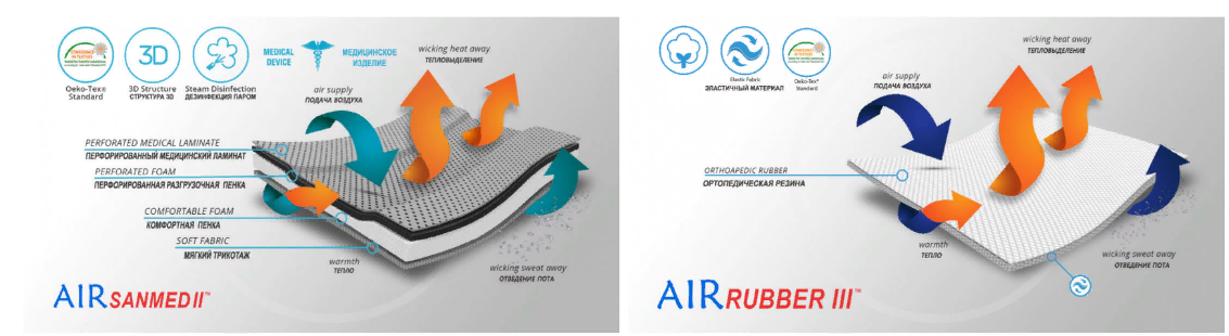 Ортез изготовлен из материала AirSanmed II и AirRubber III