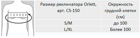 Для правильного выбора подходящего размера реклинатора Orlett CS-150 необходимо сантиметровой лентой измерить обхват грудной клетки. Далее воспользоваться таблицей, приведенной ниже: