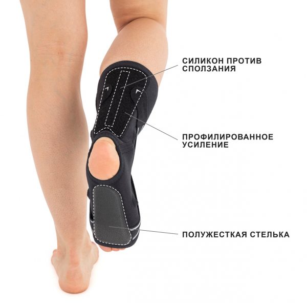 Ортез имеет нанесенный силикон предотвращающий сползание изделия во время использования.