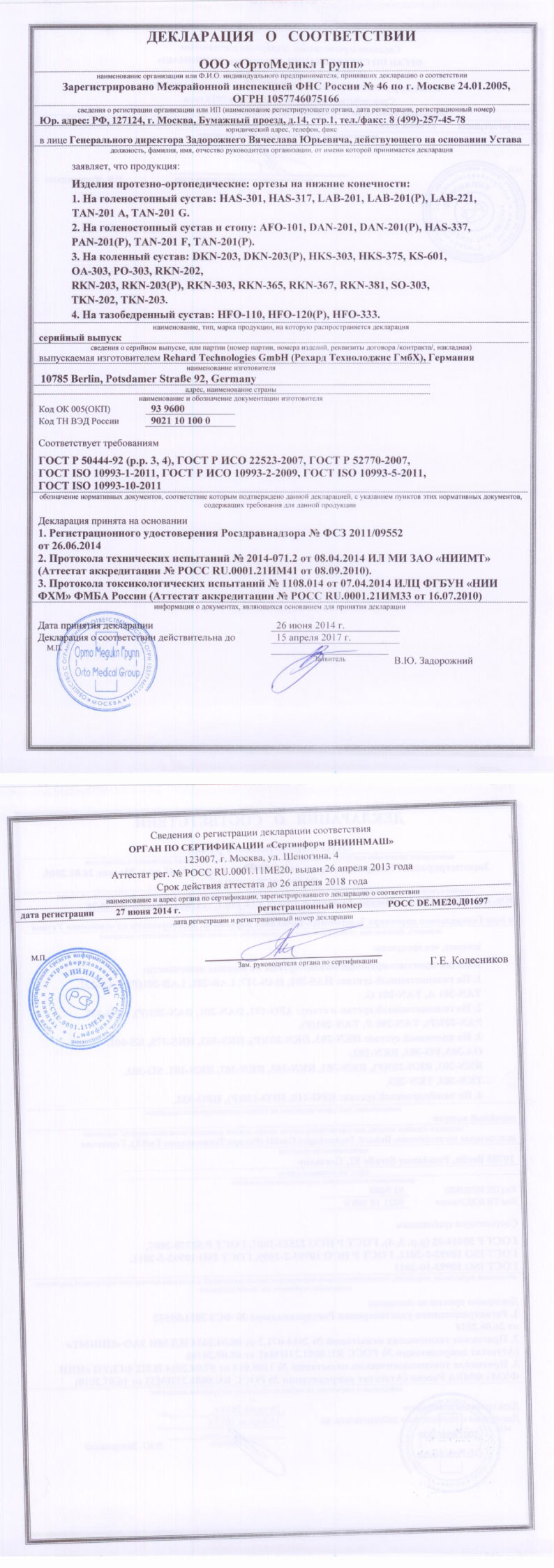 Сертификаты соответствия