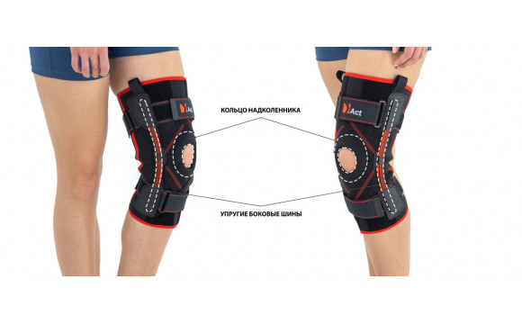 Эластичные боковые шины состоят из прочного сплава металла с добавлением пластика, анатомически плавно сгибаются, благодаря чему достигается фиксация колена во время ходьбы. Шины устанавливаются в боковые карманы