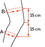 Окружность на 15 см ниже середины надколенника А |