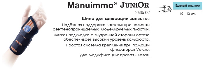 Купить mANUIMMO® JUNIOR Шина для фиксации запястья детская с доставкой в Нижнем Новгороде в интернет салоне Med V Rus по цене 3 250 руб.. Скидки до 25%. Доставка и самовывоз из пункта выдачи товаров. Оплата наличными или картой. Телефон для заказов +7 (495) 003-4512.