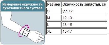 Для правильного подбора детского лучезапястного ортеза Orlett WRS-202 (P) на лучезапястный необходимо измерить сантиметровой лентой (плотно, но не утягивая) окружность лучезапястного сустава. Далее воспользоваться