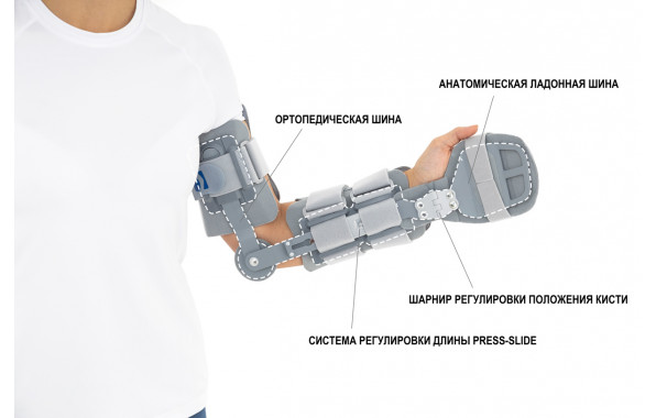 Модульный ортез для руки AM-KG-AM/1RE с фиксацией кисти и регулировкой подвижности локтя иммобилизирует сразу несколько суставов и оснащен одноосной ортопедической шиной с возможностью регулировки угла сгибания с шагом 150, обеспечивающей превосходную стабилизацию поврежденной конечности. Отличается легкостью и удобством наложения.