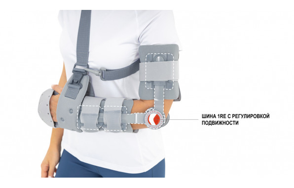 Рука удерживается в согнутом положении благодаря мягкому ремню с разгружающей подушечкой в области плеча;