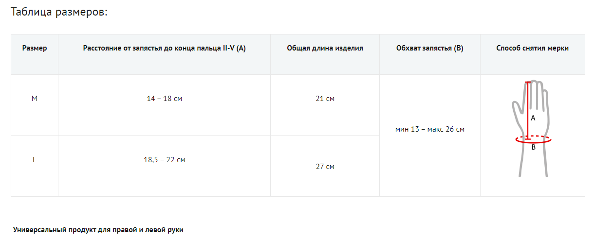 На запястье есть застежка и ремень «на липучках», дополнительно фиксирующий ортез на конечности, и предотвращающий случайное расстегивание. Ортез изготовлен из материала AeroSpace II ™.