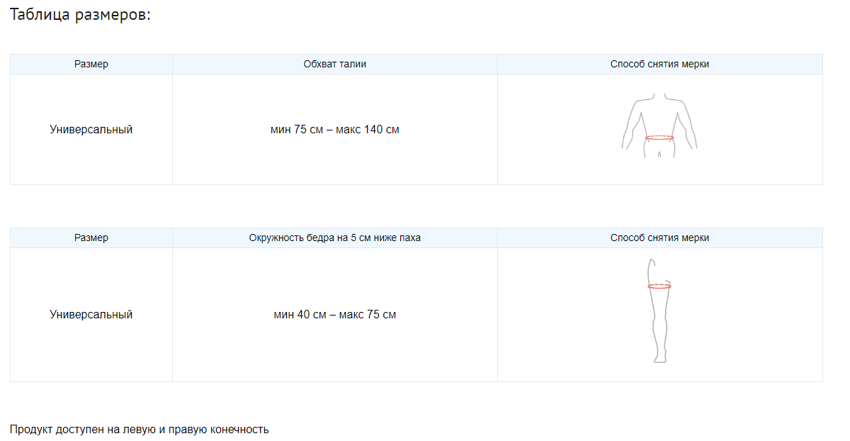 Ортез имеет открытую конструкцию для лучшей подгонки по анатомии пациента. Бедренный и тазовый пояс имеет широкий диапазон регулировки окружности, благодаря чему бандаж можно адаптировать к разным типам телосложения.